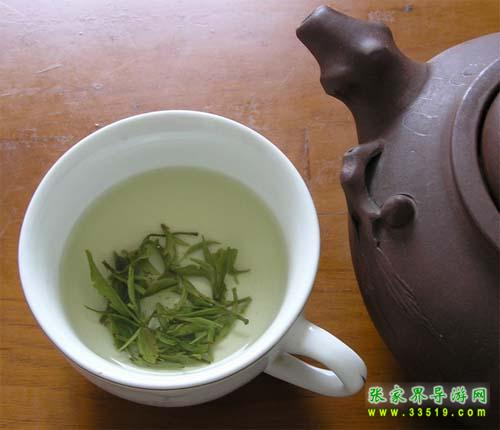 武陵源風(fēng)景區(qū)盛產(chǎn)香茶,著名的有“青巖茗翠”、“龍蝦花茶”、“黃石寨云霧茶”、“天崇毛尖”與“索溪毛尖”等。通過1982年評比,“青巖茗翠”獲部級金杯獎(jiǎng),同年又獲全國首屆食品博覽會(huì)銀獎(jiǎng)。“龍蝦花茶”也已列入全國名茶。人們經(jīng)過品嘗、評比,并經(jīng)茶葉專家鑒定,一致認(rèn)為“青巖茗翠”、“龍蝦花茶”等具有外形美觀,內(nèi)質(zhì)優(yōu)良等特點(diǎn)。這種茶葉,從外形來看,條索緊結(jié),圓渾彎曲,苗鋒顯露,銀毫滿披,色澤翠綠,從內(nèi)質(zhì)來看,清香馥郁,味醇回甘,湯色綠明,葉底均勻,飲后爽神,具有熟板栗蘭花之奇香,飲后回味無窮。據(jù)考證,“青巖茗翠”屬高山云霧茶一類。自古道:“高山出好水,云霧育佳茶”。黃石寨枇杷界海拔1000多米,氣候溫和,云霧繚繞,溫度適宜,因而,茶葉嫩度高,品質(zhì)好。這種獨(dú)特的環(huán)境為茶葉中的氨基酸,咖啡堿等有效成分的形成和增長,提供了優(yōu)越的生長條件,而對質(zhì)地粗老的纖維素的形成,則又起到了抑制作用。還有,這些山峰上日照短,直射光少,漫射光多,晝夜溫差大,土質(zhì)的有機(jī)質(zhì)豐富,因而結(jié)構(gòu)疏松,排水又好。一切這些因素,都為茶葉的平穩(wěn)生長創(chuàng)造了良好的條件。所以“青巖茗翠”茶,就博得了各地名家的一致好評。湖南省茶葉學(xué)會(huì)秘書長、湖南農(nóng)學(xué)院副教授朱先明品了這種茶以后,賦詩贊美: